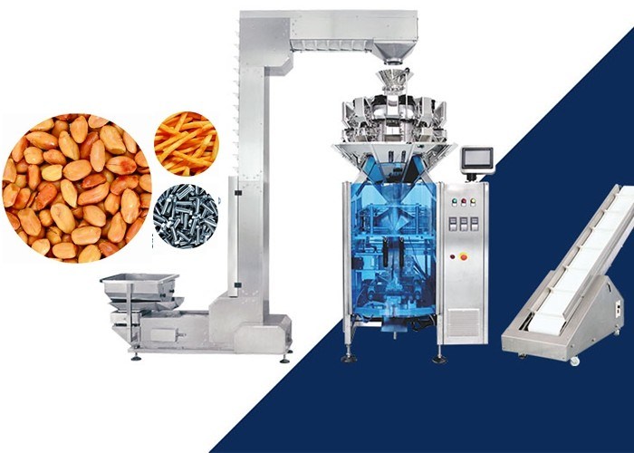 As suficiências do formulário e a linha de empacotamento verticais automáticas dos selos com pesadores do multihead são apropriadas para pesar o grânulo, a fatia, o rolo, ou os produtos da forma irregular tais como doces, semente, geleia, fritadas, grânulo do café, alimento de peanut.puffy, biscoito, chocolate, porca, alimentos para animais de estimação, alimentações congeladas, etc., é igualmente apropriado para pesar o hardware pequeno e componentes plásticos. Encontre suas várias necessidades. O sistema está incluindo um pesador do multihead do computador, transporte de Z, plataforma de trabalho, alimentador dobro, máquina vertical do selo da suficiência do formulário, transporte do produto acabado.